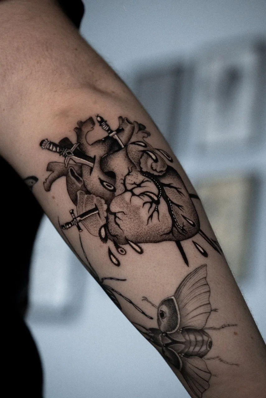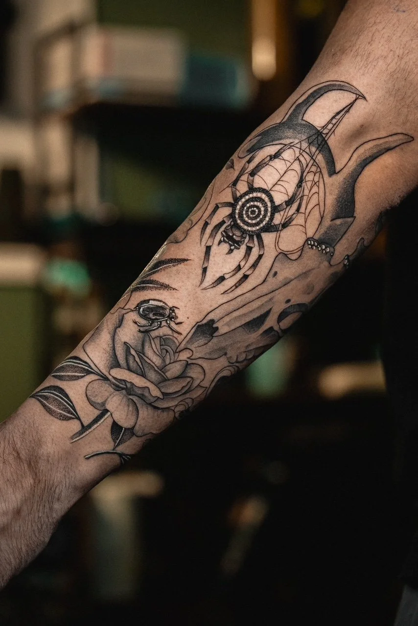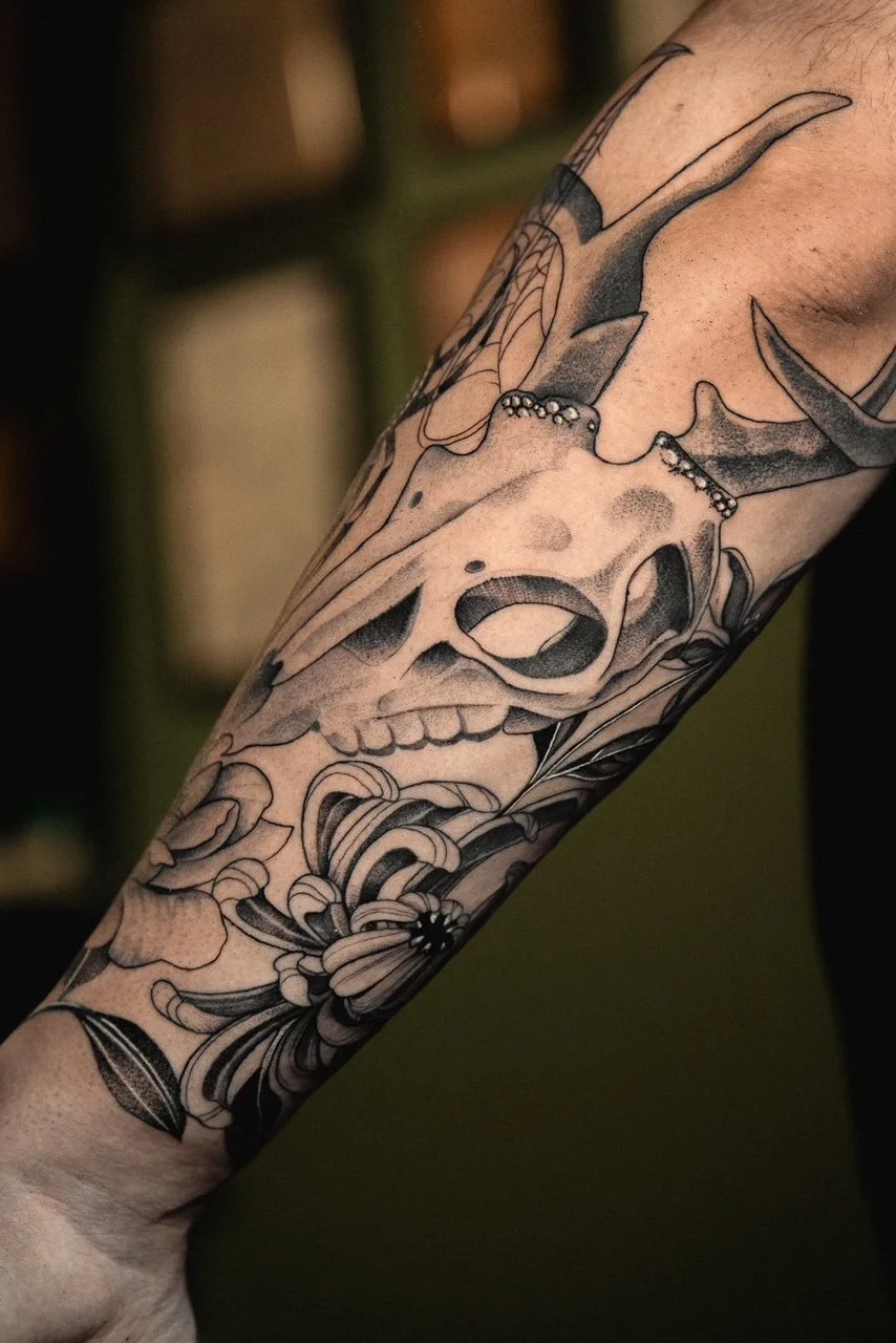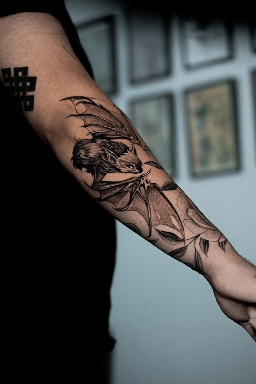Bluebird is our freehand specialist, and utilizes this method to create pieces that compliment the shape of the client’s body. Her main focus is black and grey, fine line, and dot work tattoos, and she uses her illustrative skills to create unique designs that evoke a surrealistic feel. Bluebird also loves tattooing botanicals and nature, anime, gothic and victorian styles, spooky themes, and ornamental.